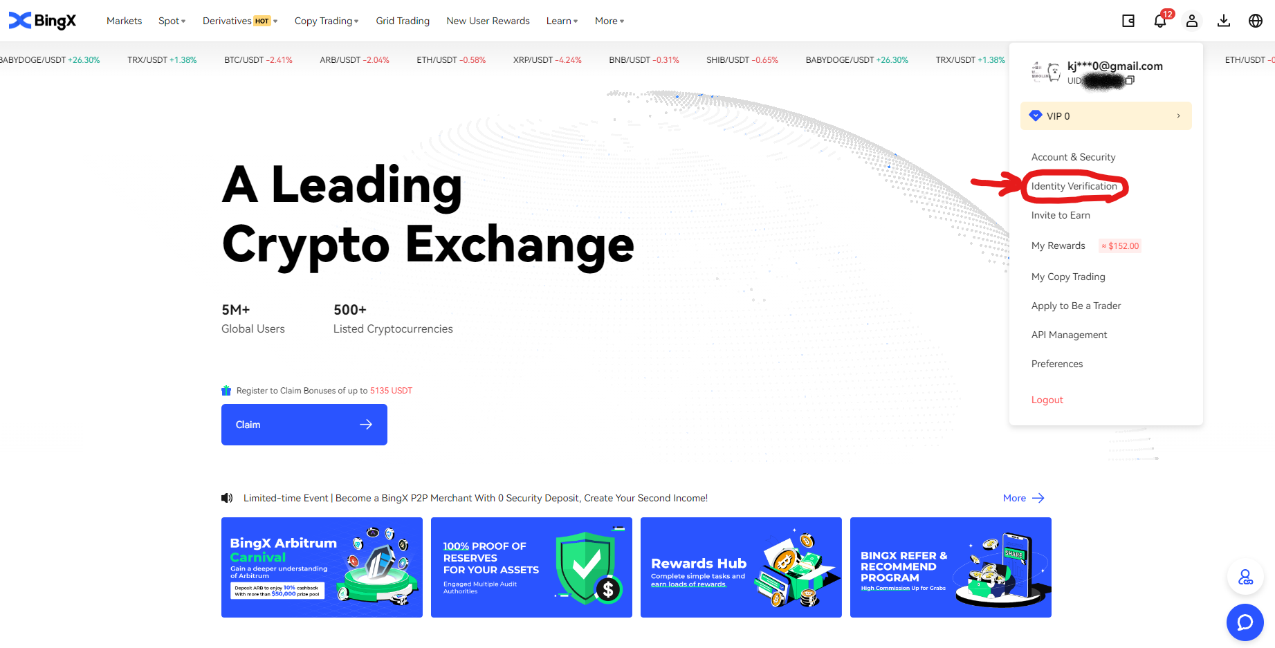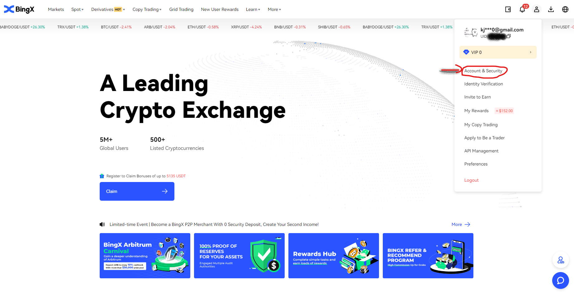 마찬가지로 빙엑스 수수료 할인코드로 들어갑니다.