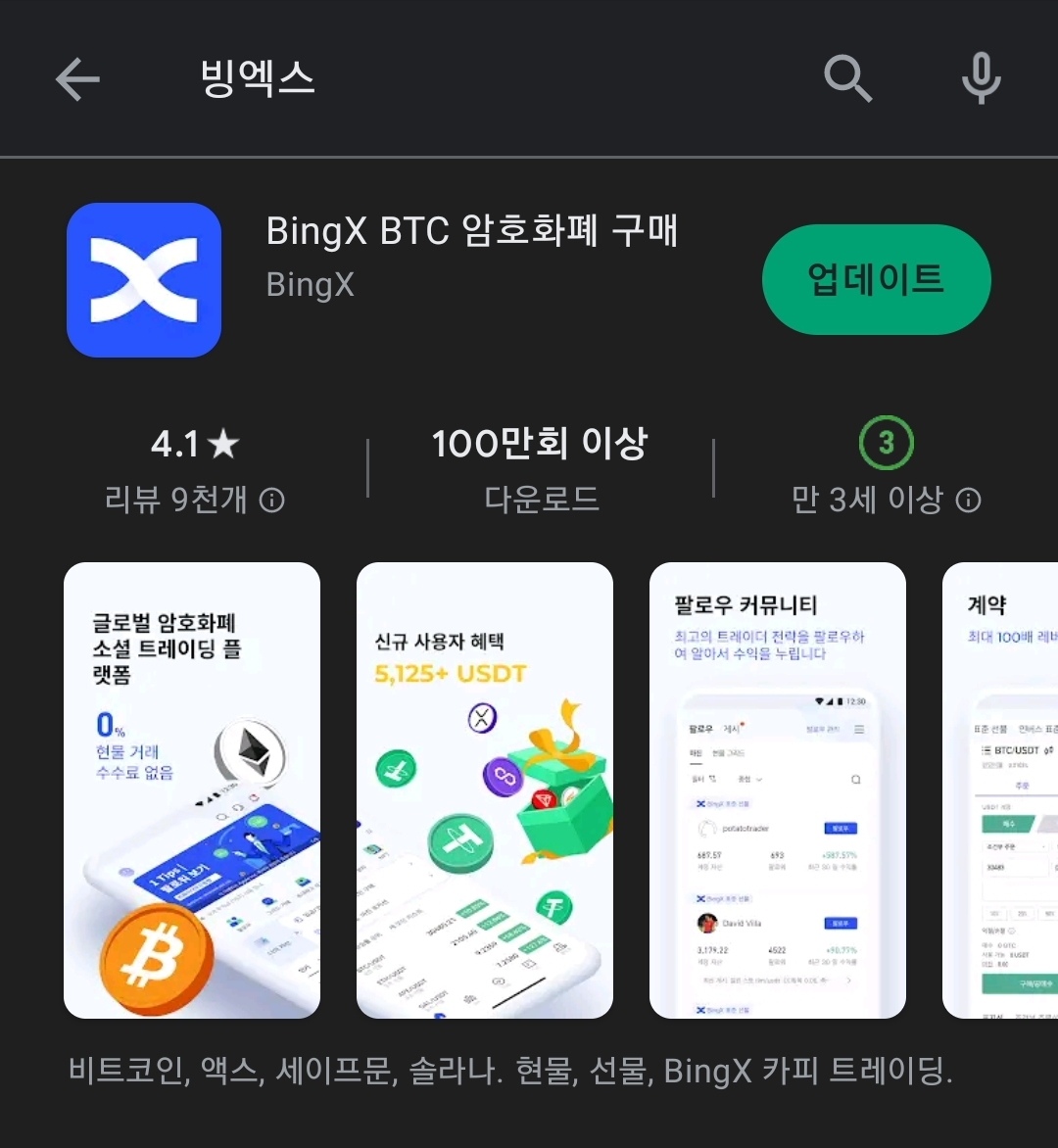 이 이후에는 안드로이드는 구글 플레이스토어, 아이폰은 앱스토어로 가서 빙엑스 어플리케이션을 다운 받습니다.