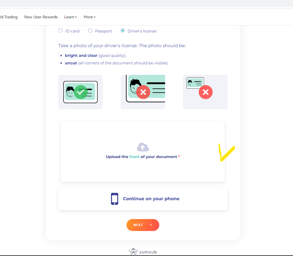핸드폰으로 사진 찍는게 편한사람은 Continue on your phone 를 눌러서 핸드폰으로 진행할수 있습니다