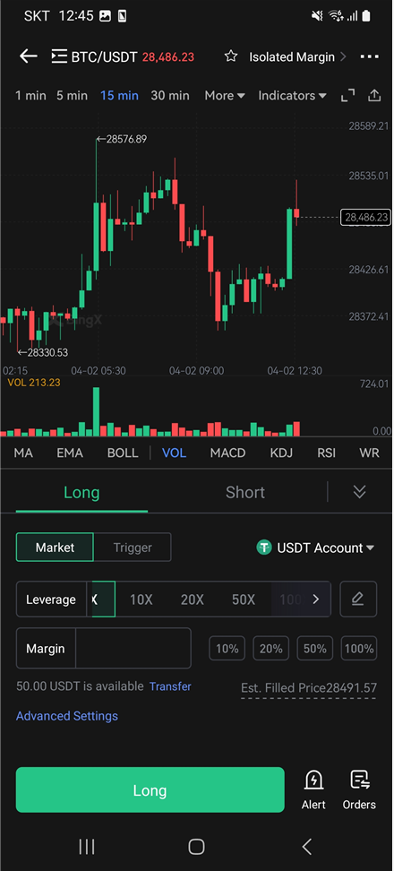 예) 지금 비트코인이 28400 인데 난 28000에 롱포지션을 사겠다